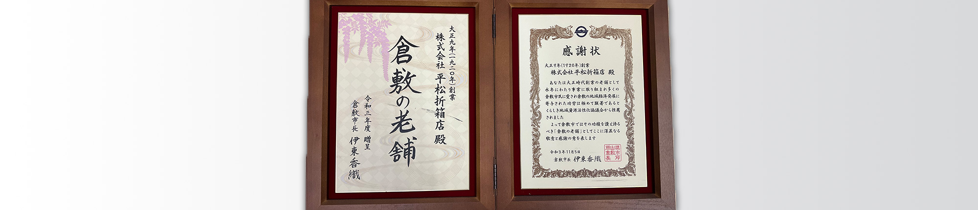 創業当初より現在地へ移転されるまでは阿知3丁目に店舗を構え、平松折箱店をスタートさせました。