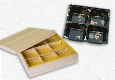昭和50年頃にプラスチック容器を販売するようになり、その比重は徐々に折箱から取って代わりました。